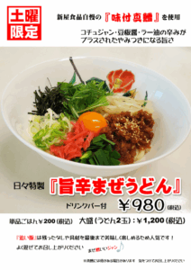 日々特製 旨辛まぜうどん 980円(税込)